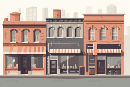 Illustration of street with three contemporary buildings: store, cafe and workshop against white background. small business concept