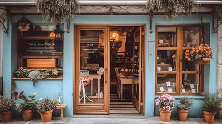 Generative AI paris france 03 03 2023 : typical old vintage boutique mockup, storefront template , e