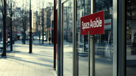 A captivating urban scene showcasing a storefront with a Space Available sign, symbolizing potential for development in a bustling city environment.