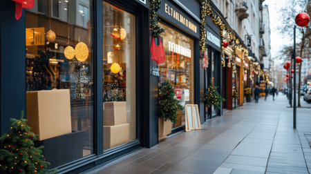 London, UK - December 5, 2020: Row of cafes and florist decorated for Christmas on Connaught Street in Mayfair, an affluent area in the West End of London in the City of Westminster borough.