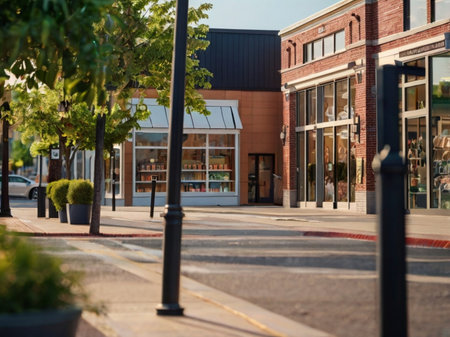 A serene urban scene showcasing charming storefronts with a visible For Rent sign. The peaceful ambiance highlights the beauty of vacant commercial spaces waiting for new opportunities.