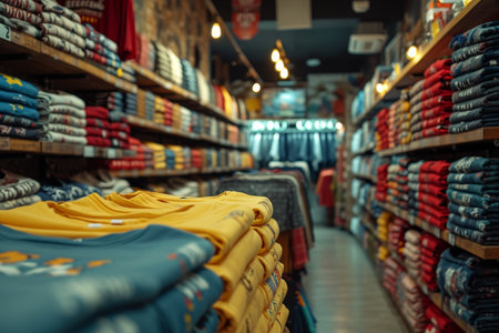 fast-fashion store, with overflowing shelves of trendy clothing and accessories, created with generative ai