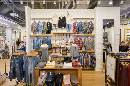 SHENZHEN, CHINA - CIRCA APRIL, 2019: interior shot of Moussy retail store at a shopping mall in Shenzhen.