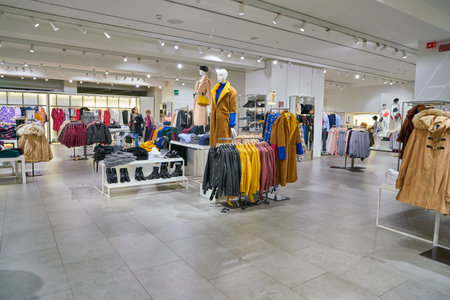 MILAN, ITALY - CIRCA NOVEMBER, 2017: inside a Mango flagship shop in Milan. MANGO is a Spanish clothing design and manufacturing company.