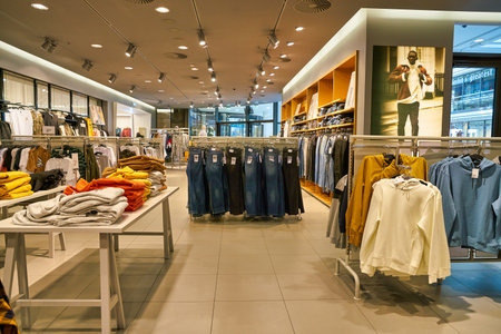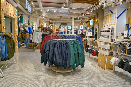 MOSCOW, RUSSIA - SEPTEMBER 14, 2019: interior shot of Levi's store at Salaris shopping mall in Moscow.