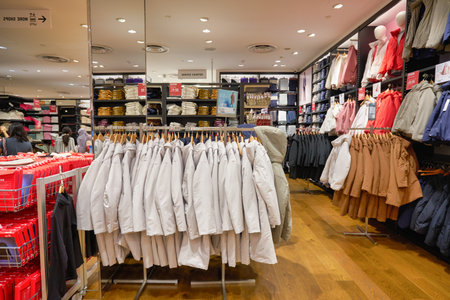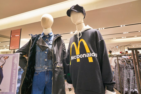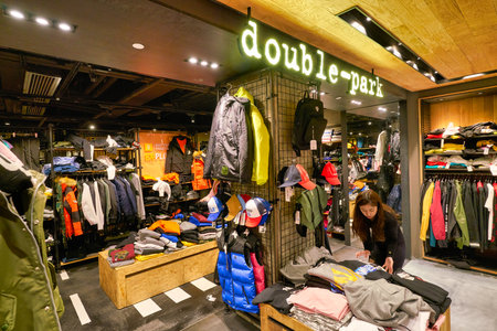 HONG KONG, CHINA - JANUARY 23, 2019: clothes on display at a store in New Town Plaza. New Town Plaza is a shopping mall in the town centre of Sha Tin, Hong Kong.