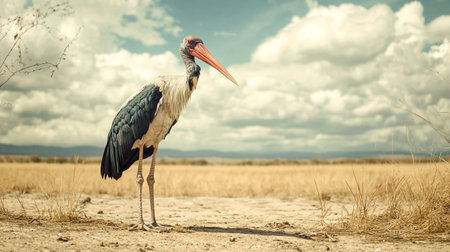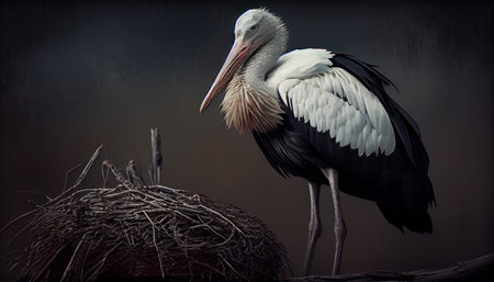 White stork with black feathers. Generative AI Illustration