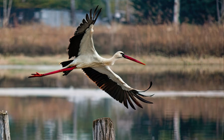 Stork flying over water surface Wildlife Scene