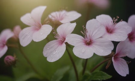 Beautiful pink wildflowers with water drops on petals.