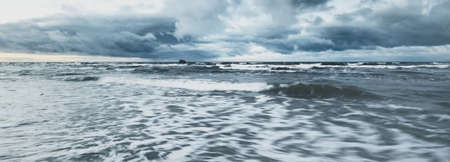 Stormy sea. Dramatic sky, stormy ocean waves. Epic seascape. Panoramic view