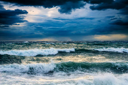 Stormy sea with stormy waves. Dark stormy landscape.