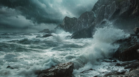 Majestic stormy sea capturing the raw power of massive waves crashing on the shoreline