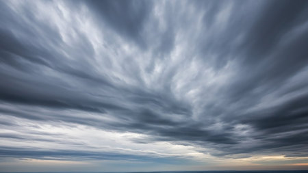 A stunning display of an overcast sky filled with dark, swirling clouds creates a moody atmosphere, perfect for capturing nature's dramatic beauty.