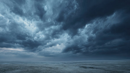 Sky showing dramatic swirling dark gray storm clouds forming over a distant horizon under a vast sky, evoking a sense of imminent weather change and atmospheric...