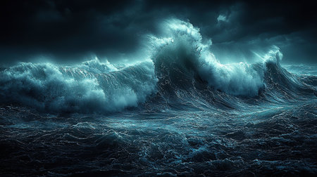 A breathtaking scene capturing dark ocean waves beneath a dramatic sky, evoking feelings of awe and admiration for nature's raw and untamed beauty.