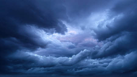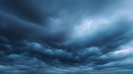 This image captures a dramatic sky filled with moody storm clouds, showcasing an interplay of blue and gray shades. Perfect for conveying emotion or atmosphere.