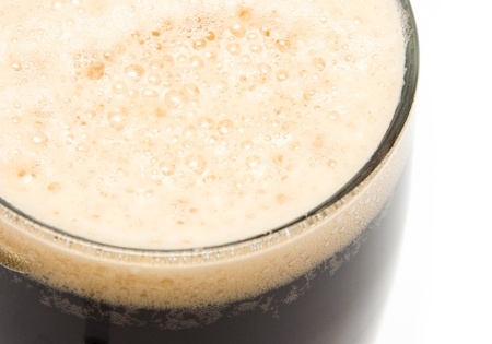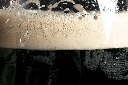foam of dark beer in a glass glass, macro photography, backgrounds, textures