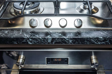 Close up of stylish gas stove in a kitchen