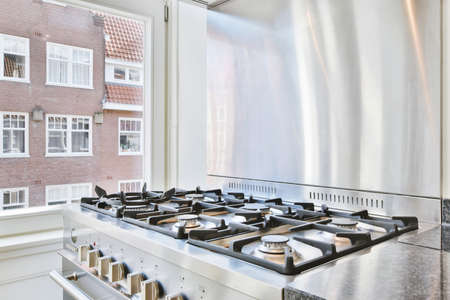Modern large gas stove in luxurious kitchen