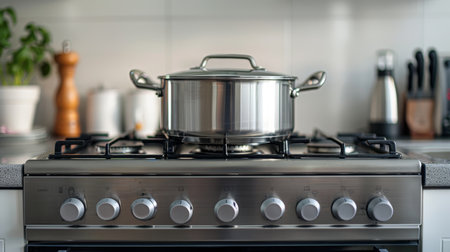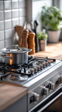 Modern stylish kitchen gas stove. Kitchen accesories.