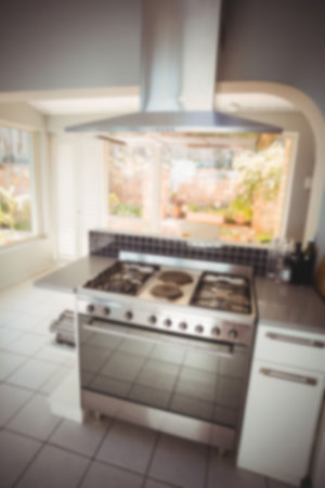 Interior of a blurred kitchen with modern electric stove, induction cook top. Closeup
