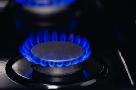 Burning blue gas. Gas stove. Topic of gas price increase