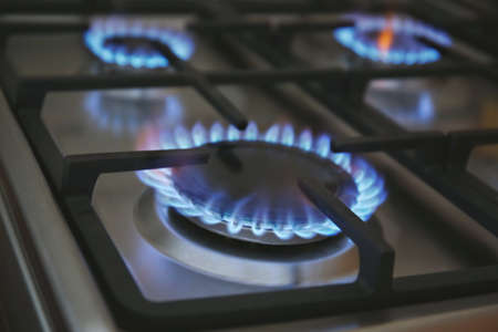 Gas stove with blue flame.