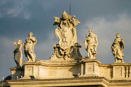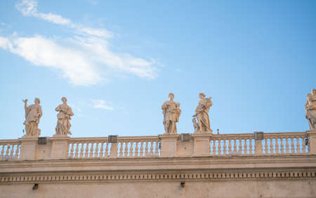 Vatican City Italy October 18, 2019 View of marble statues located at the St Peter's Basilica square in the Vatican City in the afternoon