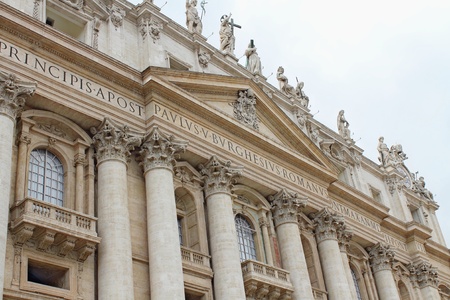 Vatican City, Rome, Italy - February 16, 2015: Part of the facade of the building in the Vatican, Rome, Italy. architectural features of ancient times.