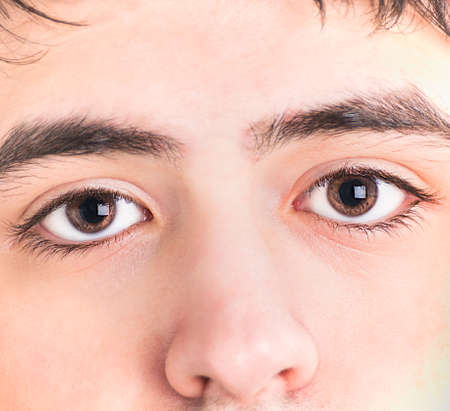 Close-up of a young man's blue eyes. Shallow depth of field.