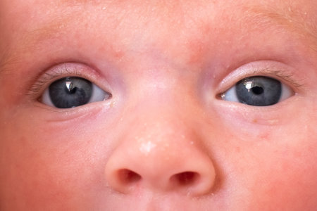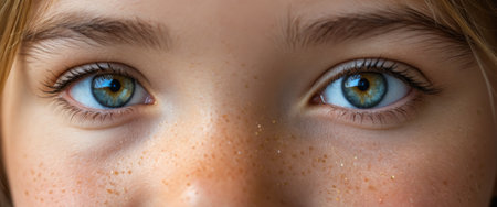 close-up view of beautiful blue eyes. profile view of a young boy with blue eyes and freckles. selective focus and shallow depth of field shot