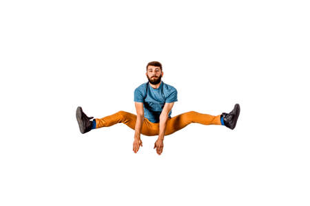 Young hip hop dancer performing a jumping isolated over a white background