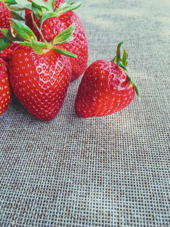 Organic strawberries on rustic linen background, fruit farming and agriculture
