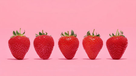 A delightful arrangement of fresh strawberries on a bright pink background captures attention. Perfect for themes related to food, health, and summer.