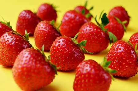 Vibrant strawberries arranged on a sunny yellow background, radiating freshness and the promise of delightful taste