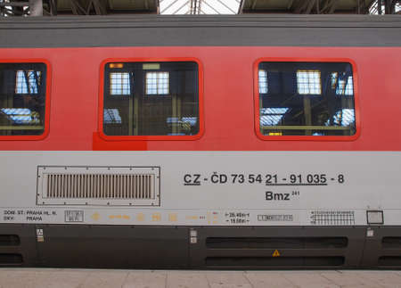 DRESDEN, GERMANY - JUNE 12, 2014: Czech train in Bahnhof Neustadt station in Dresden near the border between Germany and Czech Republic