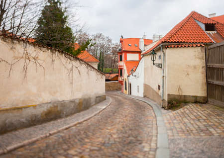 Prague, Czech Republic -July 23,2017: Old Prague street in Hradcany