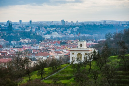 City panoramic view from popular park. Angel, Prague, Czech Republic