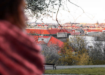 Prague, Czech Republic, October 01, 2017: View of Prague from the hill of Vysehrad fort, Czech Republic