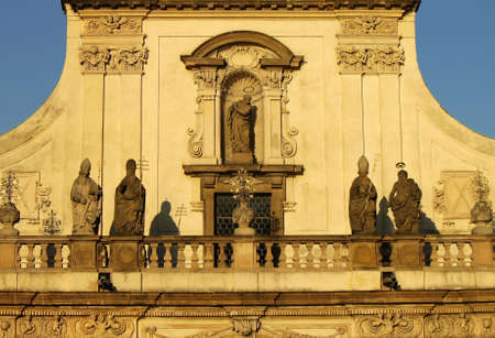The Baroque facade of Basilica of Assumption of Our Lady in Strahov Monastery, Hradcany, Prague, Czech Republic