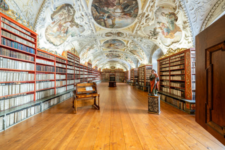 Prague, Czech Republic - February 19, 2025: Library of Strahov Monastery in Prague, Czech Republic.