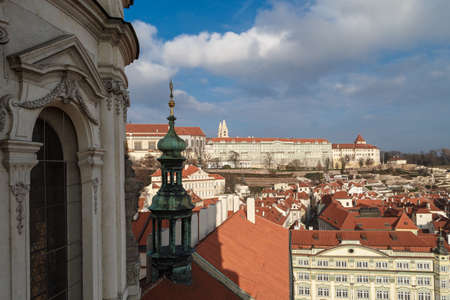 Aerial view of mala strana district, Prague Czech Republic, red tile roofs