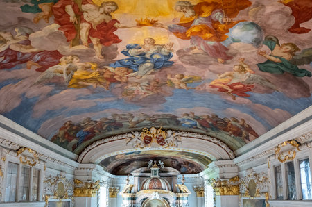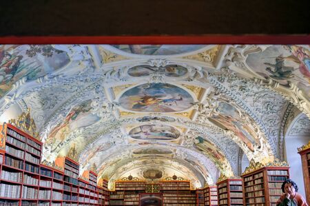 Prague, Czech Republic - May 9, 2019 - The library at the Strahov Monastery located in Strahov, Prague, Czech Republic.