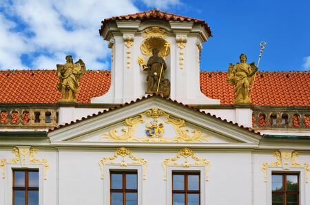 Prague Loreta historical building with beautiful sculptures outside