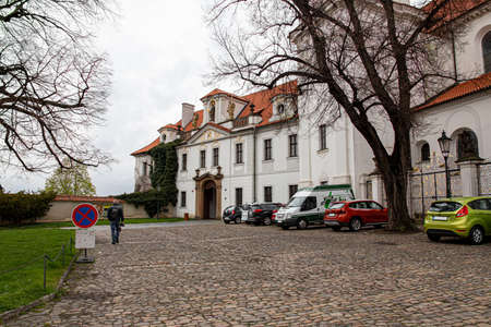 Prague, Cechz Republic - April 4, 2018 : At its core, this abbey, situated in the middle of the Premonstratensian monastery at Strahov, is a Romanesque basilica with a Gothic transept and two Renaissance towers