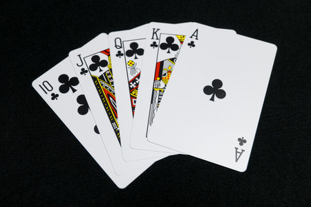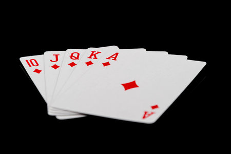 Royal Flush on a black background, a very rare poker hand close up