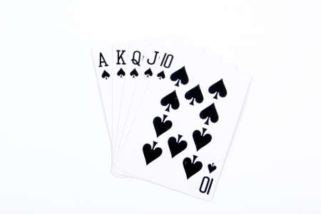 Royal flush cards. Card game, cards on the table. Poker and blackjack, play cards.