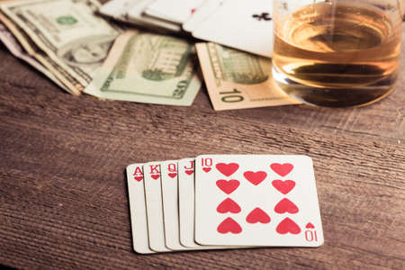 Poker cards royal flush the highest ranking hand in holdem poker on wooden backdrop