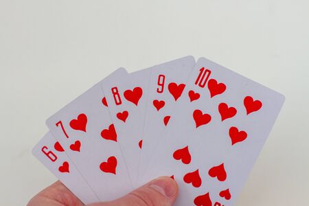 Poker hand rankings symbol set Playing cards in casino: straight Flush on white background, luck abstract