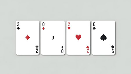Playing cards showing the numbers 2, 0, 2, and 6 form the year 2026. Clear details and vibrant co...